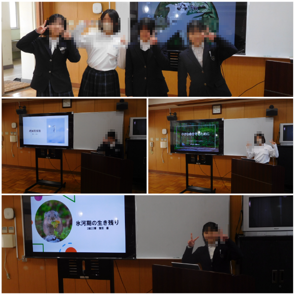 2年生が絶滅危惧種についてのプレゼンを制作し、クラス予選を勝ち抜いた代表の人の決勝戦を行いました。学年の前で発表を行うだけでなく、どの作品もパワーポイントで良くまとめられており、将来役に立つ力となりそうです。