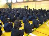 11月5日、全校集会のひとこまです。「本日は全校集会です。生徒の皆さんは今すぐに...