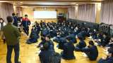 今日は地震・津波の避難訓練と備蓄食の試食を行いました。地震発生を想定して机の下に...
