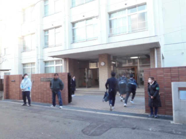 本日の朝登校のようすです。3年生は明日から懇談のため今年最後の6時間授業です。