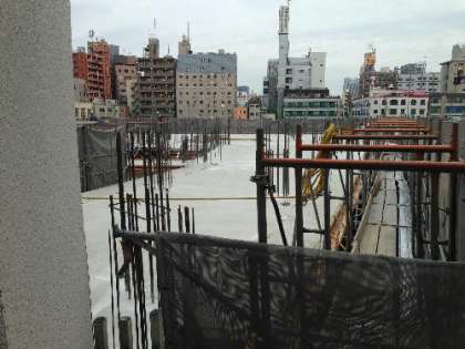 昨日2階部分にコンクリートが流し込まれました。今朝見たところ、2階天井部分というか3階床部分はもう固まっているようでした。