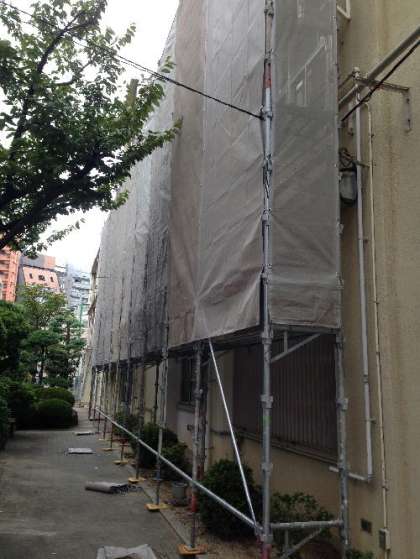 今宮中学校で一番古い建物、本館と呼んでいますが、この一部が老朽化したので、補修作業を始めました。