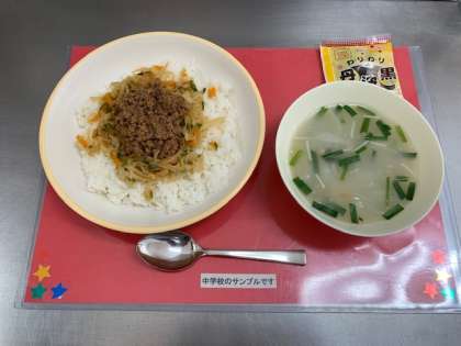 「きゅうりが苦手だけど、ビビンバはおいしくて全部食べたよ。」と1年生の児童が教えてくれました。児童・生徒に人気な献立でした。