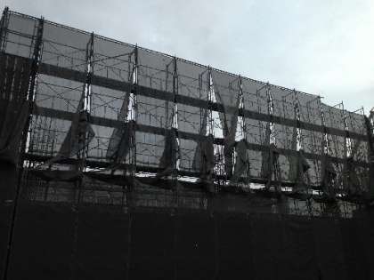 3階部分の足場ができ、幕が展開されています。だんだん撮影しにくくなってきました。