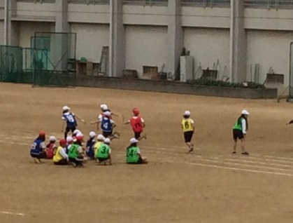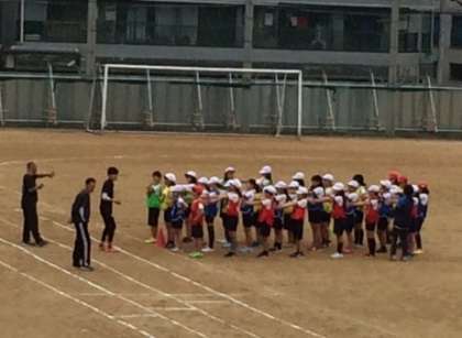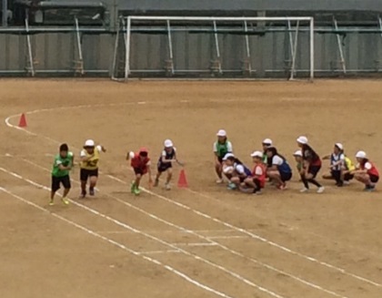 6年生の体育の授業の様子です。いまみやスポーツフェスティバルに向けて、リレーの練習をしています。