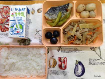 今日の全校集会で紹介したように、今日の給食メニューは「月見の行事献立」でした。
