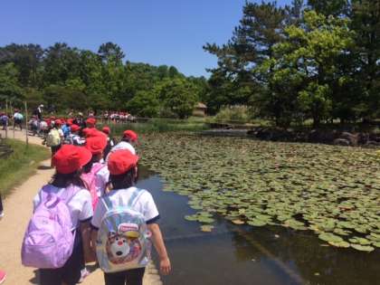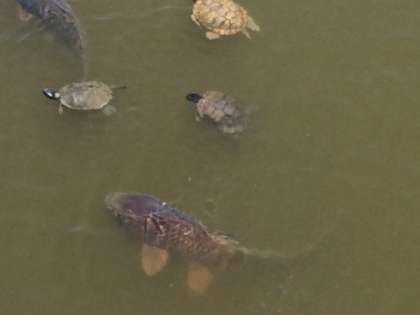 池には、大きな鯉や亀がいました。ハスの花も、綺麗に咲いていました。