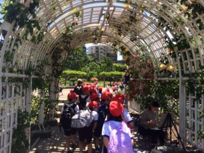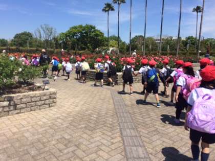 おやつの後、場所を移動。バラ園のバラが、見事に咲いていました。