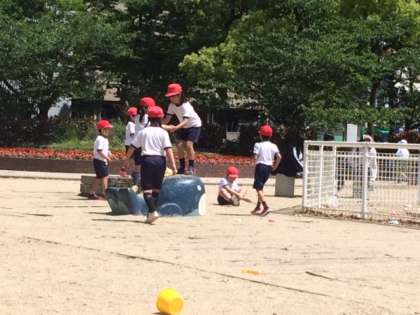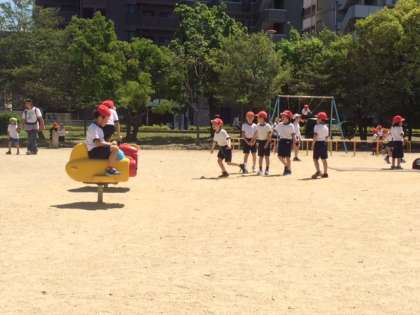 遊具のある広場で、元気いっぱい遊んでいます。