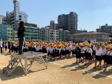 小学校朝会では、今日から1年生も一緒に参加しています。みんなで楽しい学校にしましょう!!