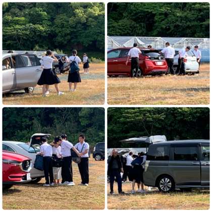 続々と民泊先の方に送ってもらって集まってきました。民泊先の方と一緒に記念写真も撮りました。