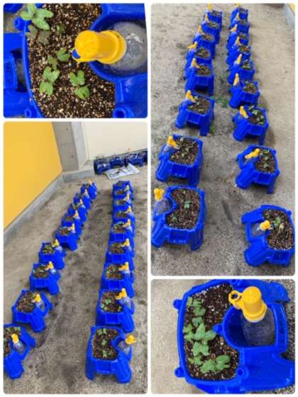 先週の金曜日に種をまいた「あさがお」の双葉が出てきました。1年生のみんなが、ていねいに水をあげてくれているので順調に育っています。
