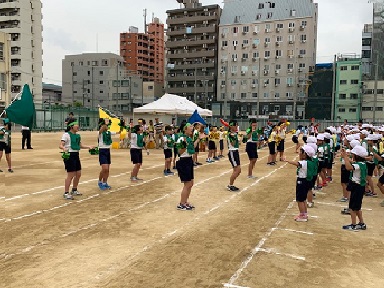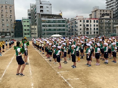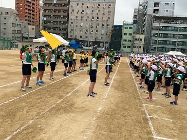 応援合戦の最後は、4色のチームが一斉に応援の声を・・・。