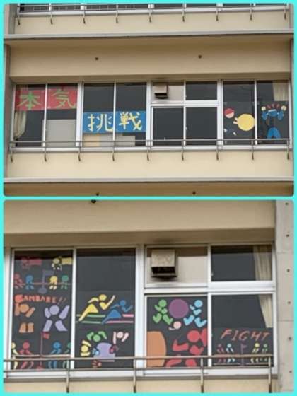 いまスポに向けて練習・準備を頑張っています。6年生の教室の窓から運動場に向けて、写真のような掲示物を見ることができます。6年生のいまスポにかける気持ちが表れているように感じています。6年生の本番での活躍を期待しています!!