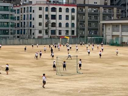 6月6日(木)の昼休みです。たくさんの小学生が運動場に出て遊んでいます。みんな元気だね!