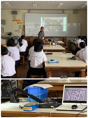 8年生の技術の学習の様子です。8年生は、これから、金属加工をして「キーホルダー」を作成していきます。まずは、これまで先輩が作成したキーホルダーの写真や下絵をプロジェクターや書画カメラを活用して見せてもらいました。映像を通して、下絵のポイントも学びました。