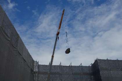 そこにクレーンが荷物を持ちあげて…シャッターを押しました。