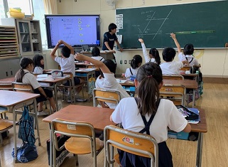 4年1組の算数の学習の様子です。平行線と角について学習を進めていました。1つの角度がわかっているところから、平行線の性質を活用して、他の角度を求めていっていました。