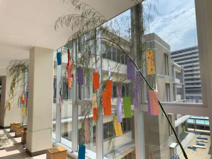 各学年や小学生の創作クラブなどで、七夕飾りや短冊に願い事を書いて飾っています。