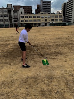ボールに羽がついていて、あまり遠くに飛ばないゴルフです。