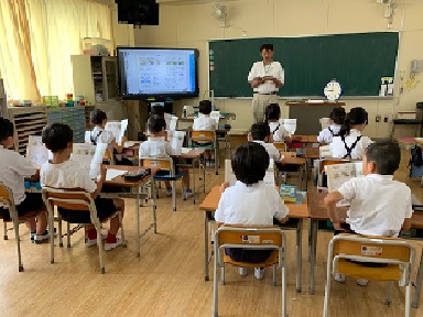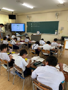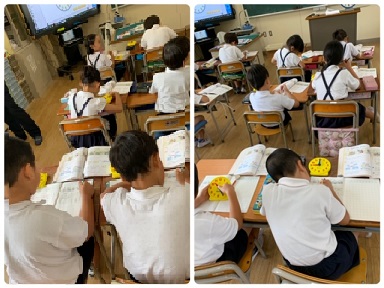 2年2組の算数の学習の様子です。単元「時計を生活に生かそう」の学習をしています。今日は、「時刻」と「時間」について学習をしていました。