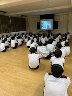 広島原爆のことを分かりやすくまとめた動画や座学での資料を用いて平和の有難さを学んでもらいました。
