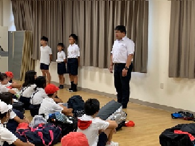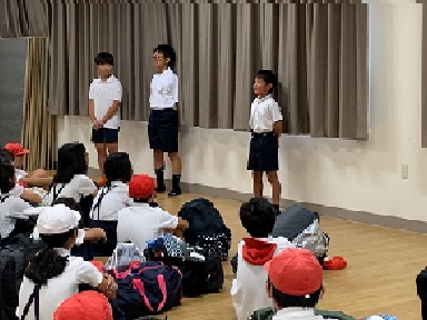 7月23日(火)、5年生は、今日から2泊3日で、ハチ北高原へ林間学習に行きます。出発式では、「めあて」を確認しました。