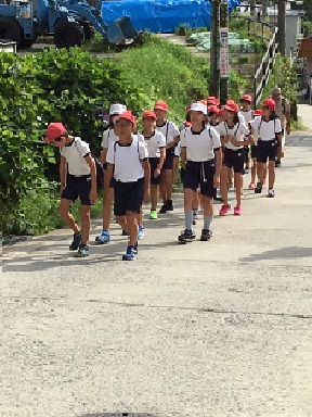 朝8時、午前のプログラム「ハイキング」が始まりました。活動班で、ハチ北展望に向けてスタートしました。