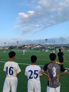 全国中学校サッカー大会を4連覇、昨年は惜しくも5連覇を逃しながらも準優勝した強豪校の青森山田中学vs大阪市中体連選抜の試合を観戦した下級生と体感した3年生。
