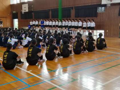 大阪国際滝井高校・建国高校のみなさんに、練習の大切さや基本プレーのポイントなどを教わり、他の中学校の選手とともに練習しました。実りの多い2日間でした。