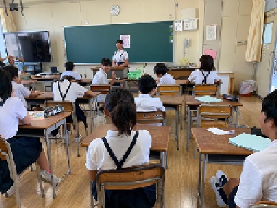 夏休みの思い出スピーチをしています。