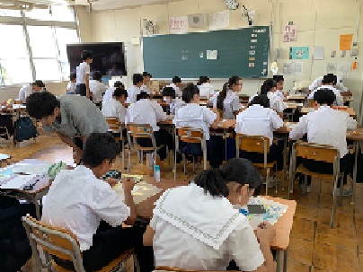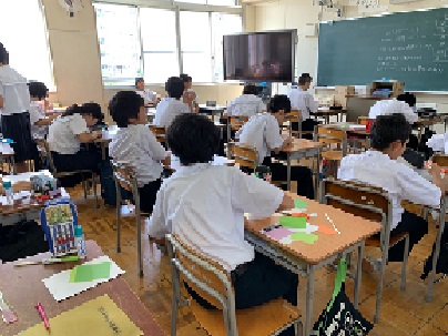 順番に教育相談を実施しています。教育相談を受けている生徒以外は、どんぐり祭に向けて、はり絵作品を制作しています。