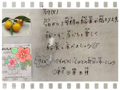 8月27日(火)、今日から2学期の給食が始まります。残さず、友だちと楽しく給食を食べましょう。