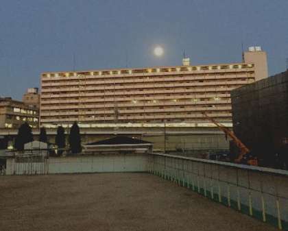 昨日の夕方、かなり満月に近い月がとてもきれいだったので、撮ってみました。