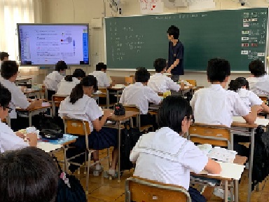 8月28日(水)、8年1組の理科の授業の様子です。原子記号の復習をしてから、単元「原子が結びついてできる粒子」の学習に入っていきました。