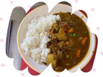8月30日(金)、今日の給食はビーフカレーライスです。今日のカレールウは、米粉を使って作られています。(小麦アレルギーの人も食べることができます。)いつもの味と比べてみましょう。
