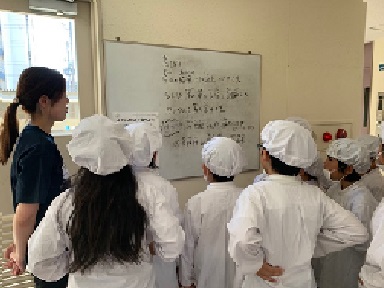 給食室の前で順番を待つ間に、「今日のクイズ」に挑戦!