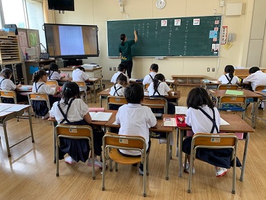 1年2組の国語の授業の様子です。「カタカナをよんだり、かいたりしよう」の学習をしています。