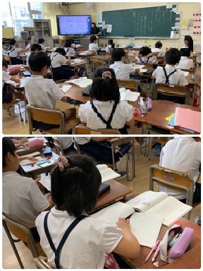 4年2組の国語の授業の様子です。単元「広告と説明書を読みくらべよう」の学習を進めていました。それぞれに書かれている事柄や特色などを、みんなで見つけていきました。