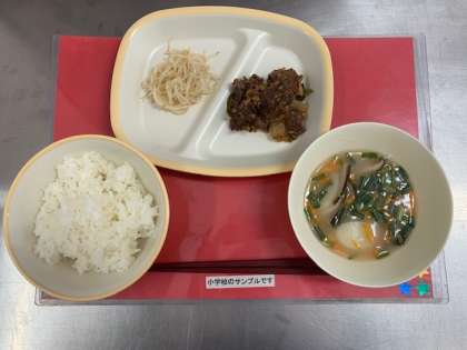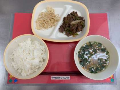 今日の給食は小学校と中学校共に、「ごはん、牛乳、プルコギ、トック、もやしの甘酢あえ」です。