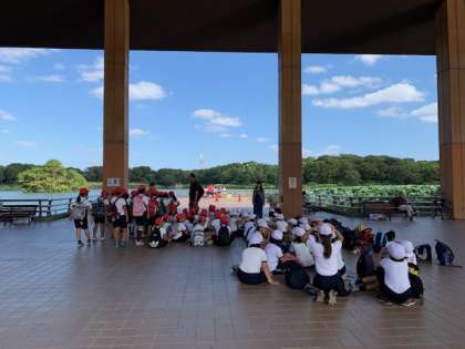 大泉緑地に到着しました。広く気持ちいい公園です。順番に、クラス写真を撮りました。