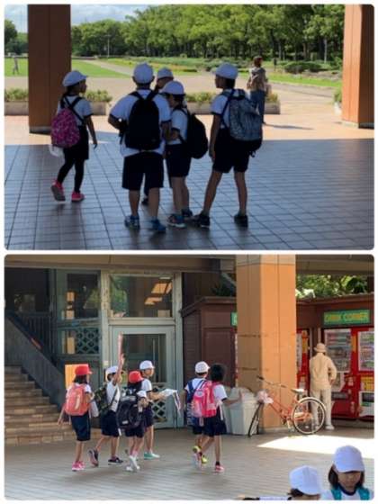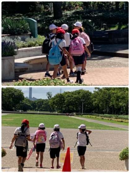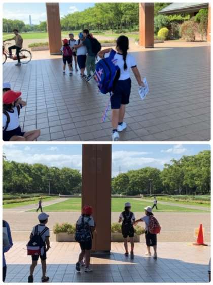 時間差をつけながら、すべての班が、ウオークラリーに出発しました。公園の自然を楽しみながら、ポイントの先生を探します。