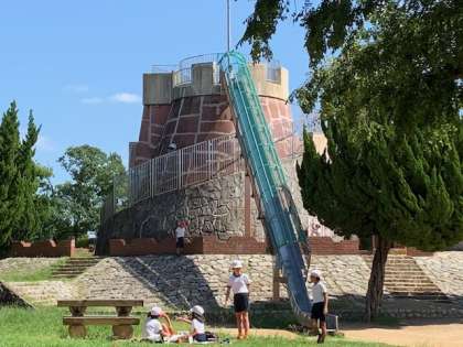 お弁当を食べたら、早速、遊具で遊んでいます。