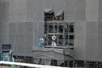 さて、今日は台風一過良い天気の中で、4階部分に関係する準備が進められているようです。