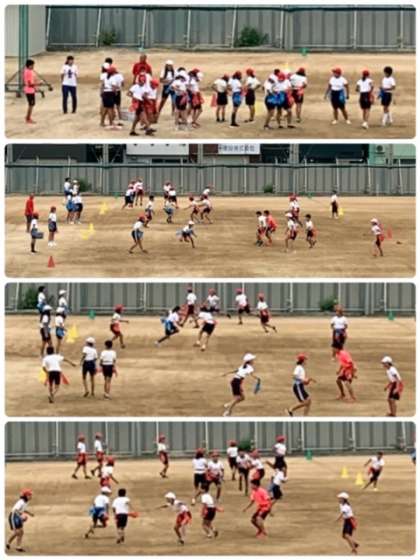 6年生の体育の授業の様子です。今日は、「タッチラグビー」をしていました。
