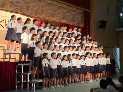 「どんぐり祭」舞台発表のトップバッターは、5・6年による合唱「Voice(ボイス)」です。少し緊張しながら準備に入りました。が、合唱が始まると、全員が心を合わせて、素敵なハーモニーを聞かせてくれました。5・6年生、がんばってくれました!!