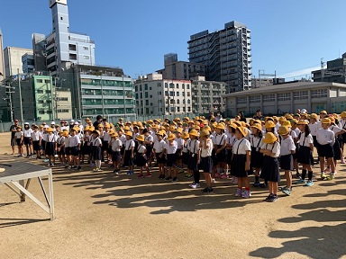 10月7日(月)の児童朝会の様子です。児童朝会では、「感謝の心を大切に」という話をしました。先週の木・金の修学旅行に、6年生は3つのめあてを持って行ってきました。その中の1つが、「感謝の心をもとう!」です。修学旅行に向けて準備をしていただいた保護者の皆様、そして、修学旅行先でお世話になった宿の方やインストラクターなど、たくさんの方のおかげで、楽しい修学旅行ができています。修学旅行中は、感謝の気持ちをしっかりと言葉で表現していました。「よろしくお願いします。」「ありがとうございます。」「いただきます。」「ごちそうさまでした。」と、心から言葉を伝えていました。その姿が素敵でした。6年生には、学校に戻ってきた今日からの生活の中でも、同じように、感謝の心を大切にしてほしいと伝えています。同様に1年生から5年生も、たくさんの方にお世話になっています。感謝の気持ちを素直に表現してほしいと伝えました。
