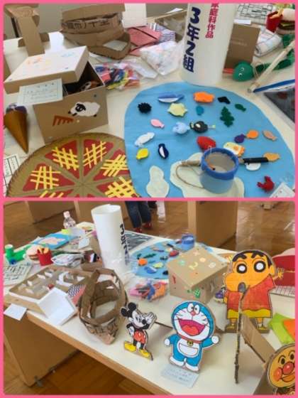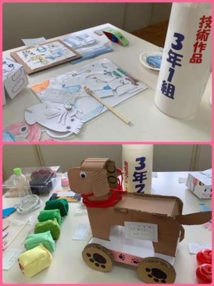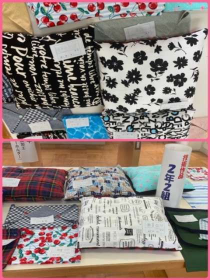 被服室には、技術科と家庭科の授業で作成した作品を展示しました。