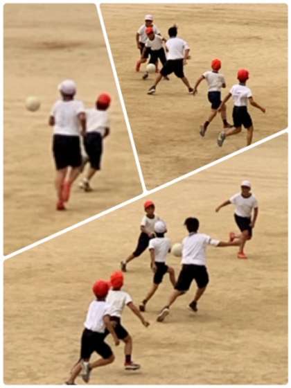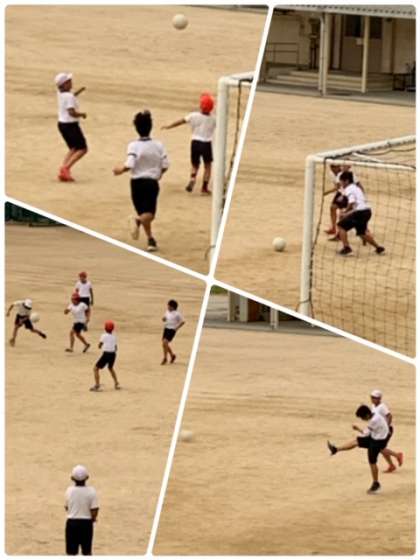 小学校のクラブ活動の時間、屋外スポーツクラブは、サッカーを実施していました。広い運動場いっぱい使って、走り回りながらボールを追っています。