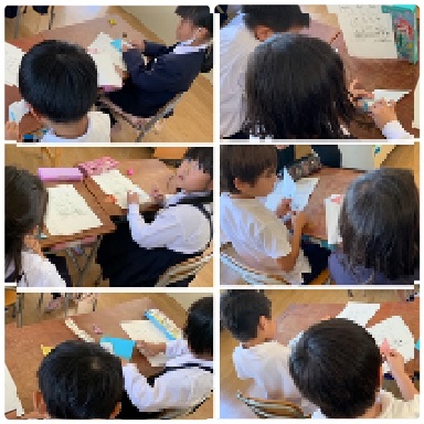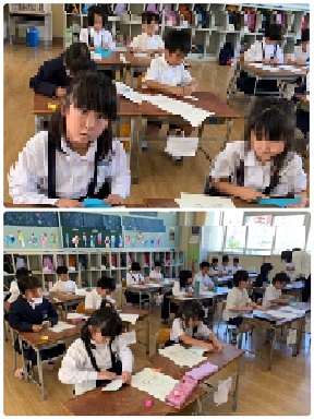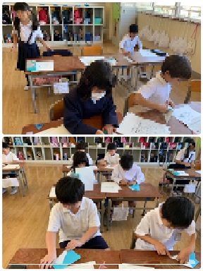 1組は、「おばけ」と「ぼうし」を作っていました。明日は、今日覚えた作り方を、1・